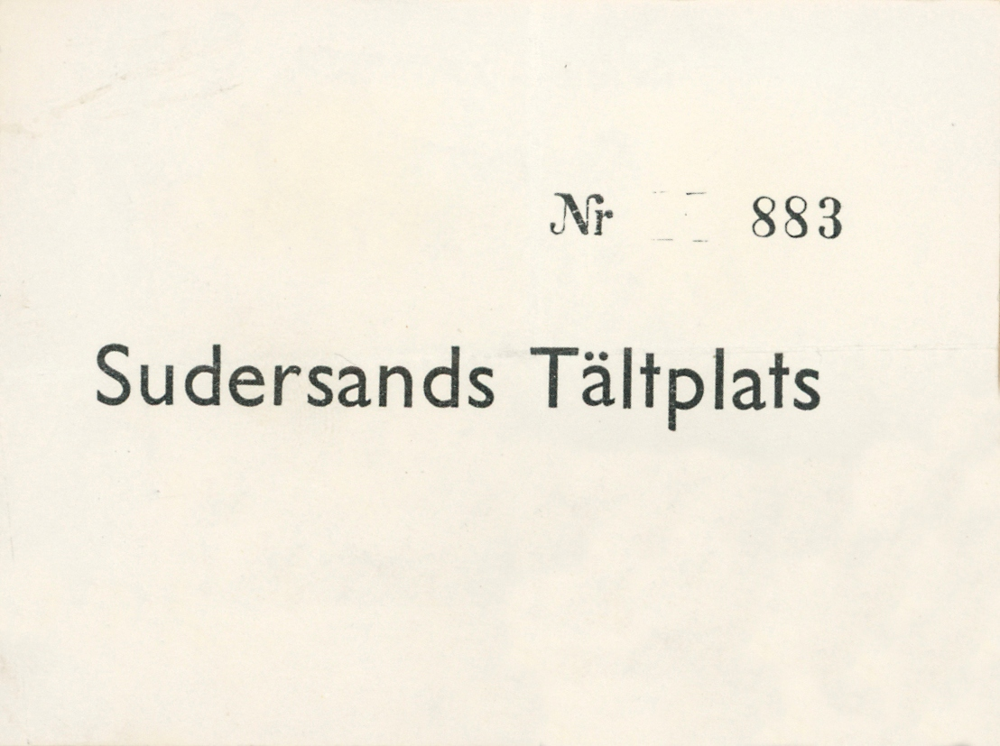 Familjen Erikssons tältsemestrar med bil på 1950- och 1960-talet. Biljett till Sudersands tältplats på Fårö, Gotland 1959.