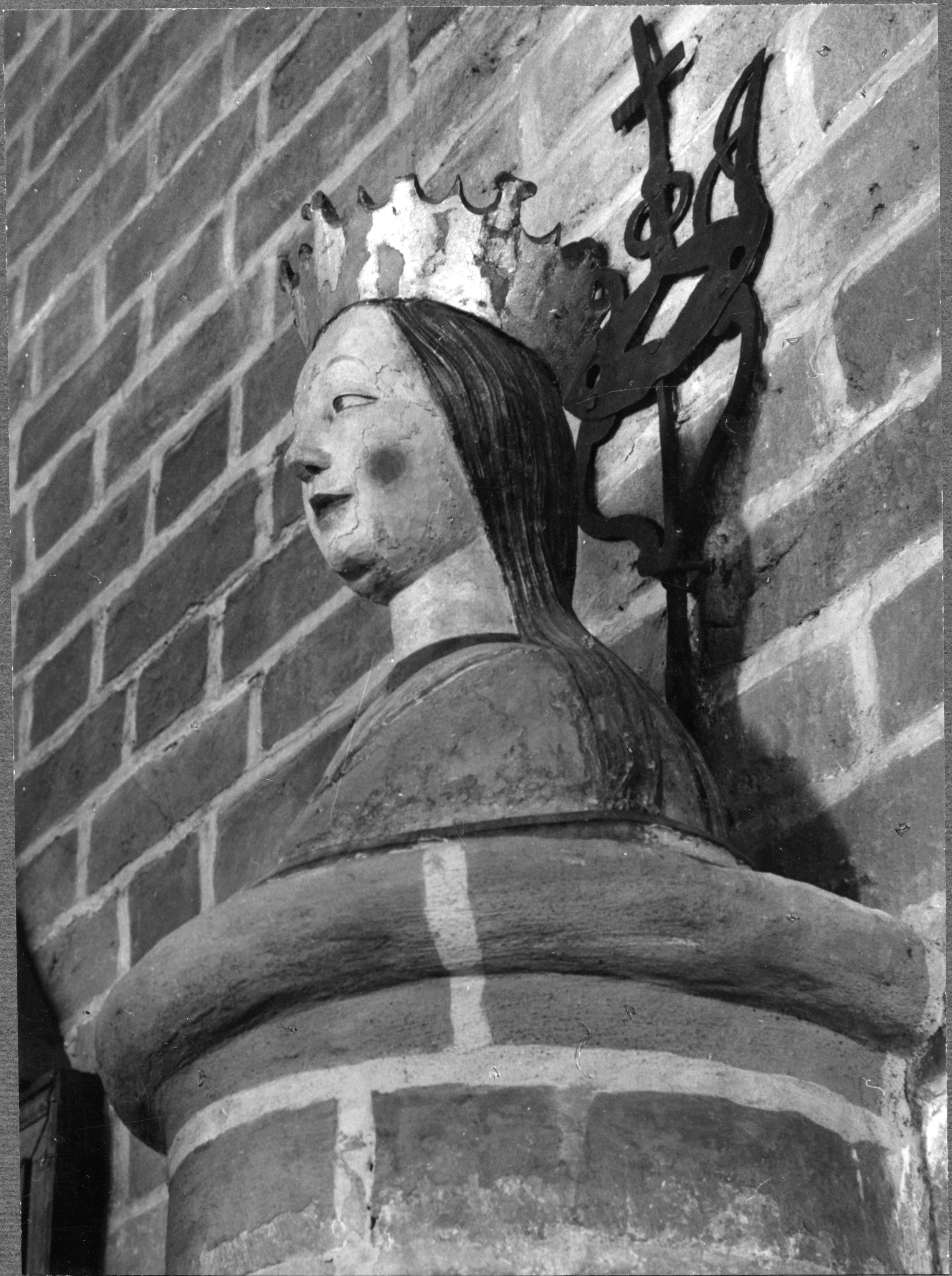 Relikvarium, krönt, kvinnlig helgonbyst, sent 1400-tal.