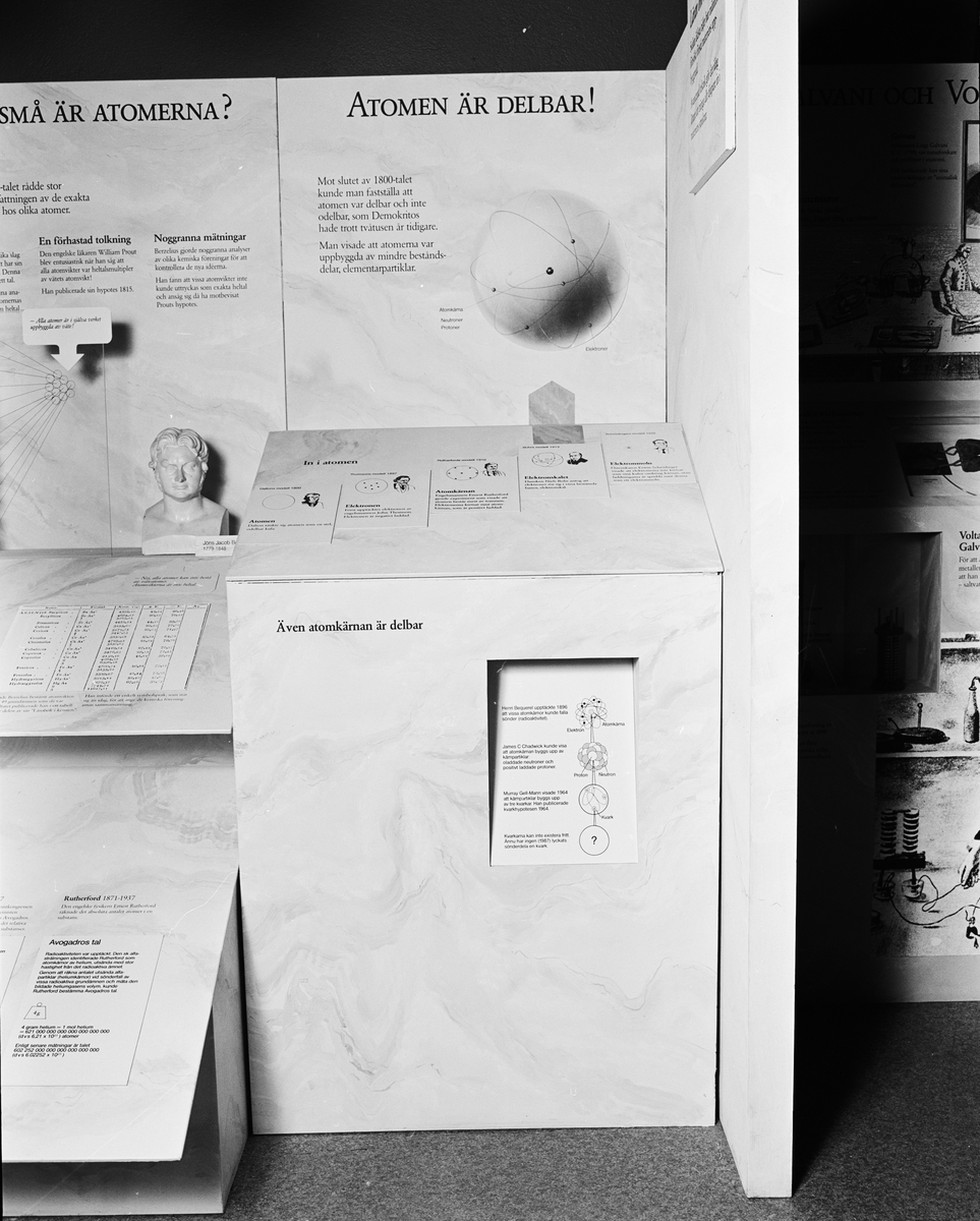 Basutställning KEMI -upptäcka, skapa, förändra. Invigd 1987-11-26. Den delbara atomen.