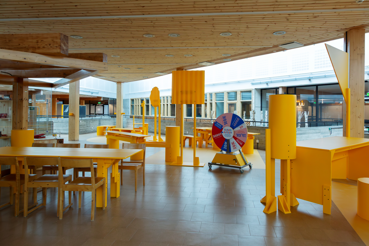 Interiör av utställning med matte-tema. Med satsningen Tekniska i Tensta vill Tekniska museet öka ungas intresse för matematik och stärka framtidens kompetensförsörjning. Tekniska i Tensta är en kreativ och tillgänglig lärmiljö där matte får nya uttryck så som spel, byggande, kod och problemlösning.