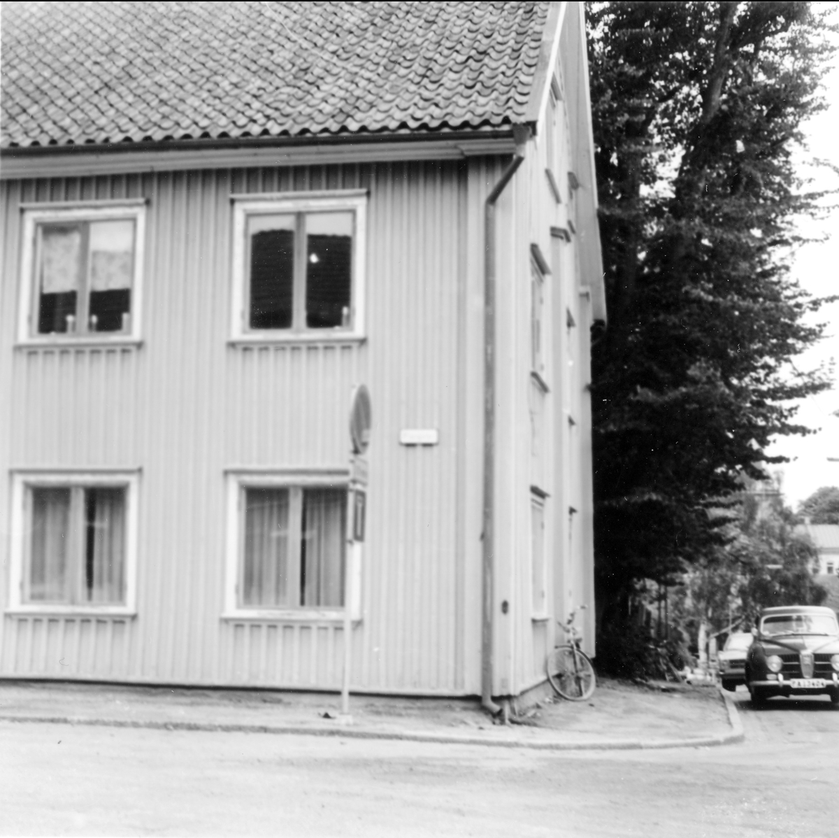 Trähus i hörnet av Plangatan och Östra Vattugränd, kvarteret Spinnaren.