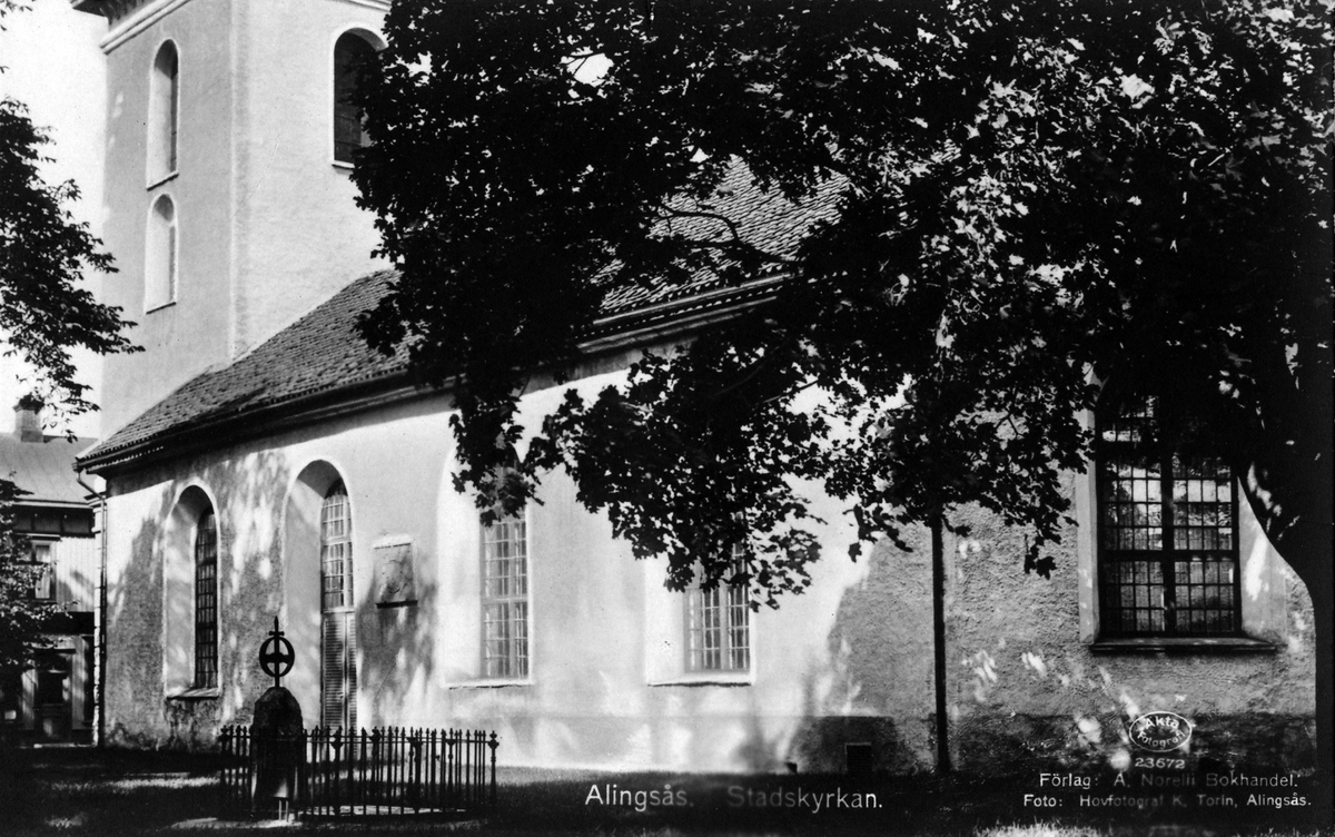 Alingsås stadskyrka och Alströmers gravplats.