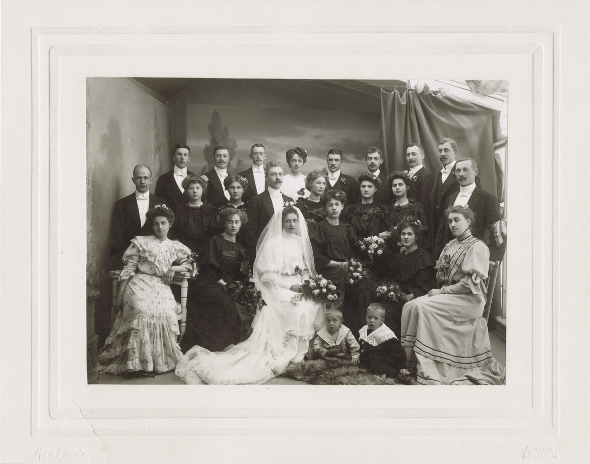 Gäster samt brudpar vid vad som tros vara Dina Boströms bröllop.