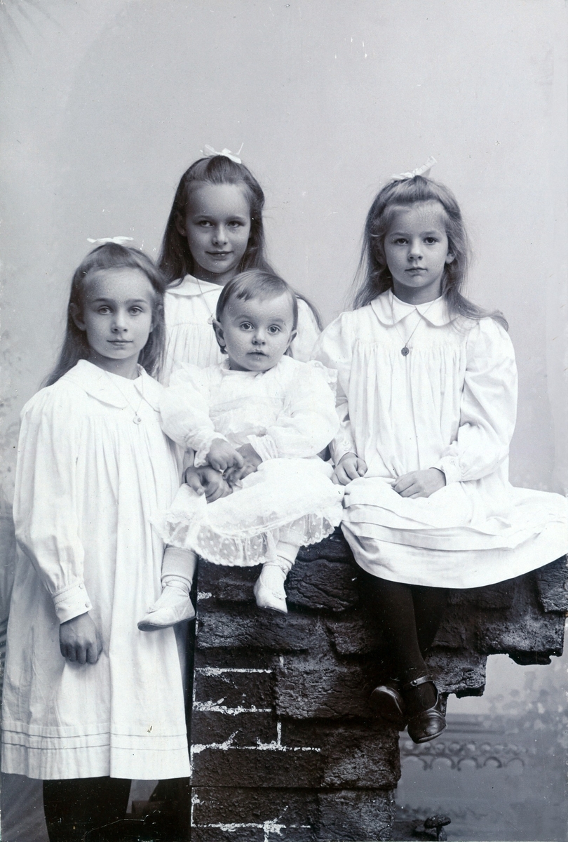 Porträtt av fyr barn klädda i vitt.