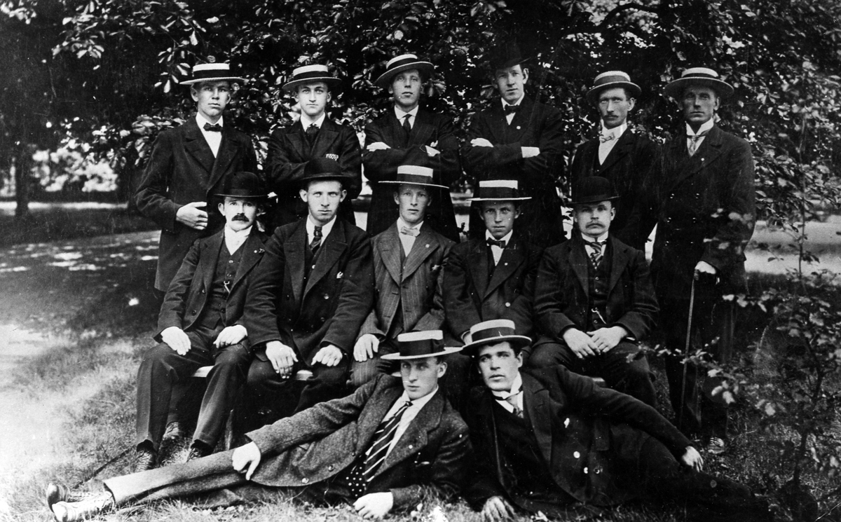 Gruppbild på unga män i en park.