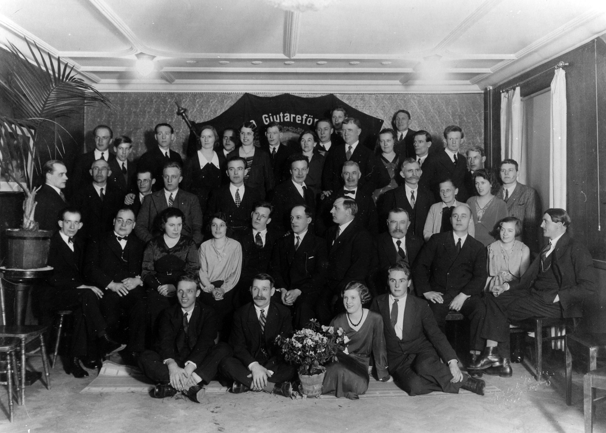En gruppbild på Svenska Gjutareförbundets Alingsåsavdelning bestående av 9 st kvinnor och 32 män.