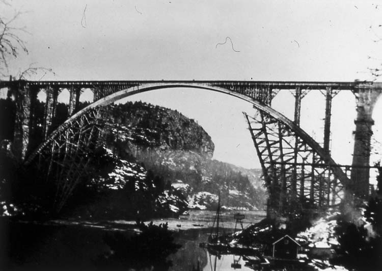 Medföljande text: "Sv/v foto av bron under byggnation".