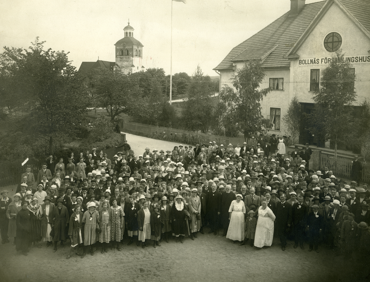 Folksamling utanför Församlingshuset i Bollnäs.