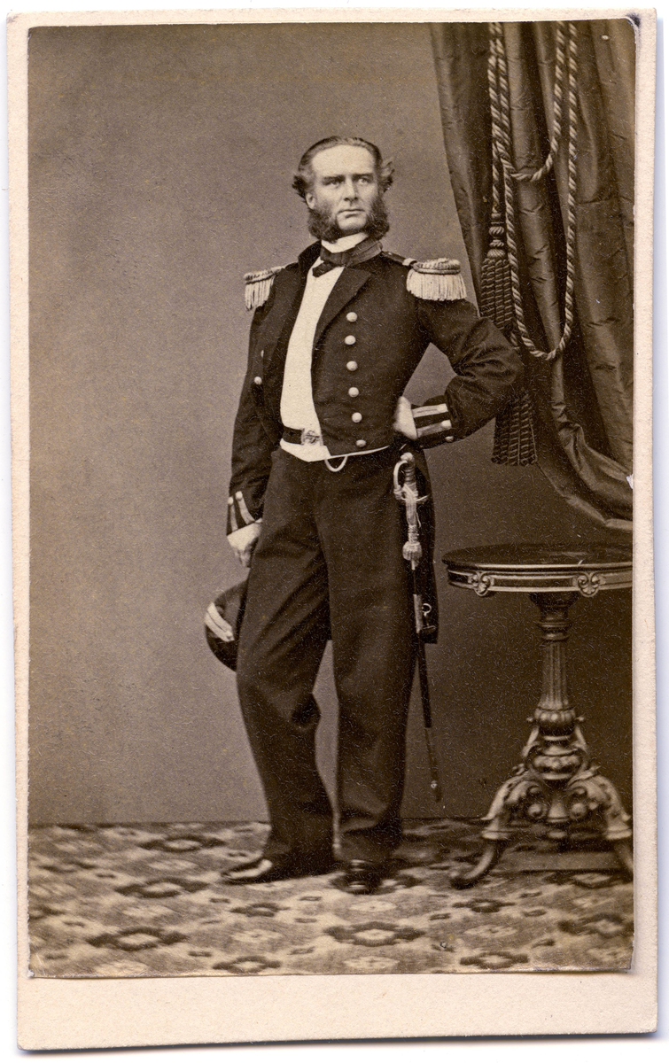 Porträtt på en man i uniform i helfigur.