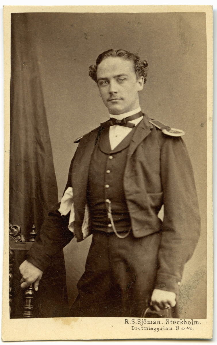 Porträtt på en man i uniform, fotograferad i helfigur.