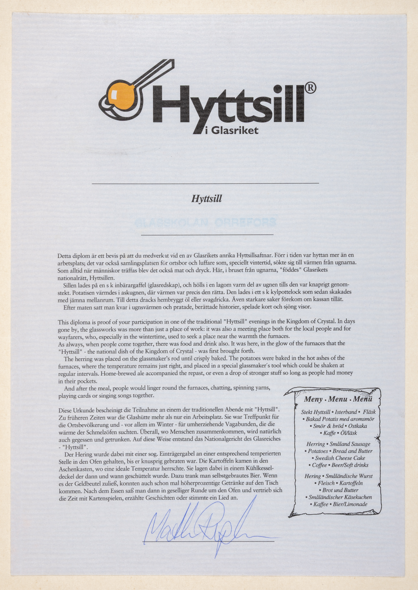Hyttsillsdiplom, Orrefors 1994.