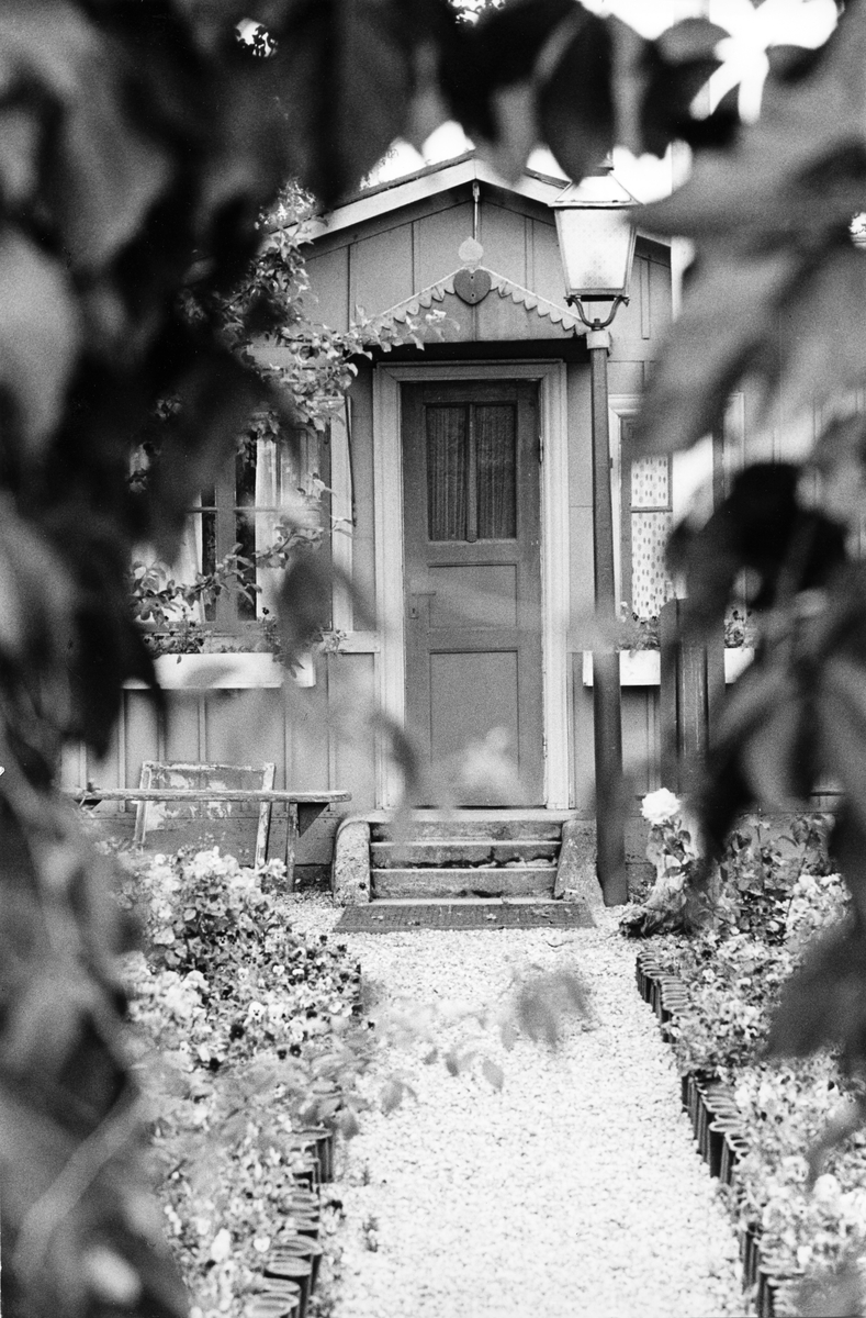 Södra Koloniträdgården. "En vänlig, försonande grönska odlas också i de vuxnas lekhagar". Från utställningen "Gävlar i stan" på Gävle Museum 1967.