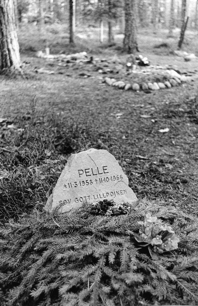 Hundkyrkogården, "Pelle, 1958. 3 november - 1966. 11 oktober. Sov gott lillpojken". Från utställningen "Gävlar i stan" på Gävle Museum 1967.