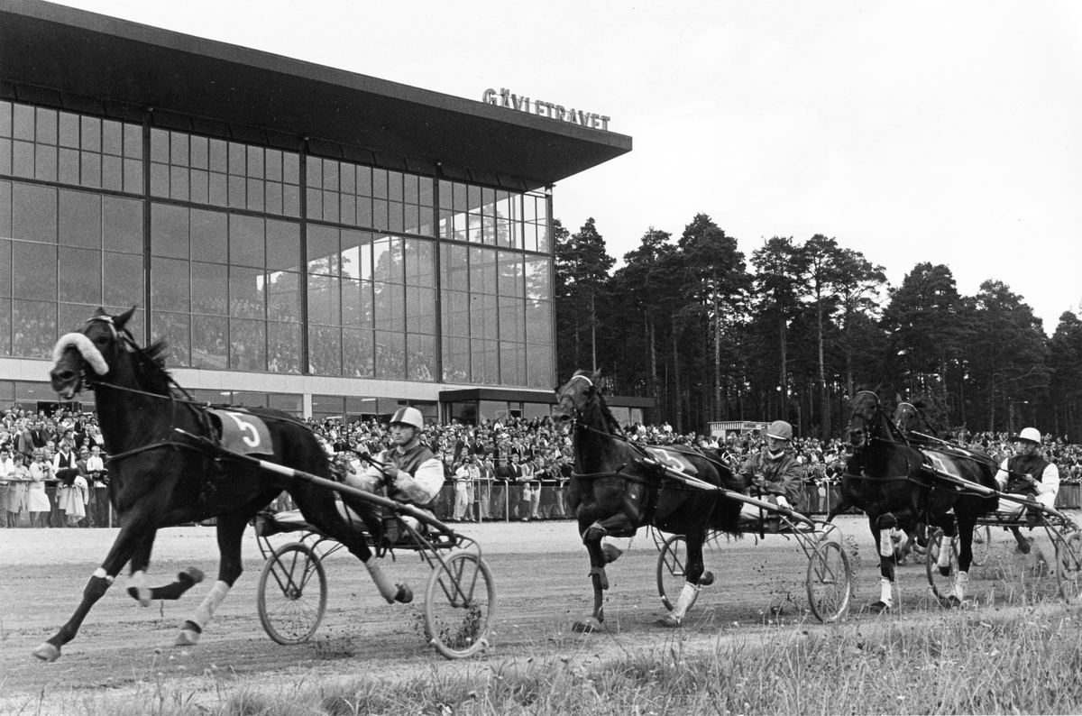 Titel: Gävletravet. Från utställningen "Gävlar i stan" på Gävle Museum 1967.