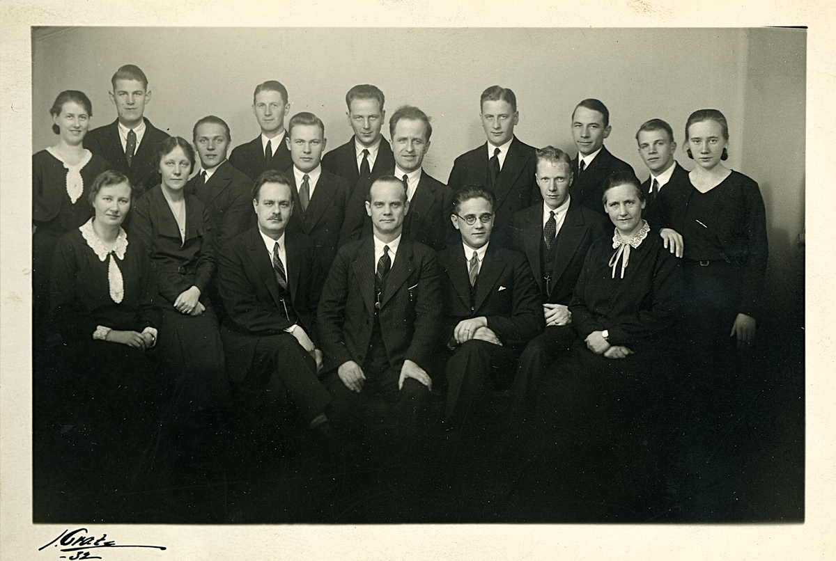 En grupp människor, både män och kvinnor, som poserar för fotografering vid någon form av tillställning.