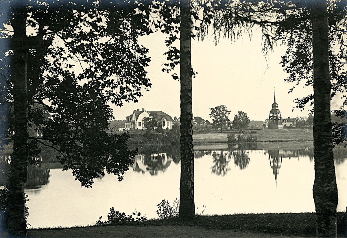 Gavleån i förgrunden samt soldathemmet och klockstapeln i Regementsparken som syns i bakgrunden.