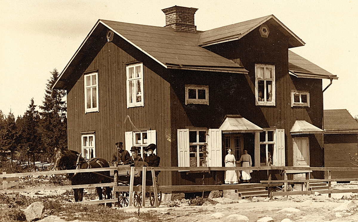 Bomhus. Norelund, affärshus och hästskjuts 1912, Gävle. (källa: tradera)