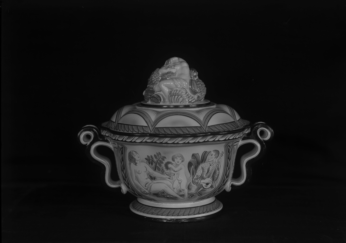Vinbål med skulterat lock. (A.Percy 1924-46)