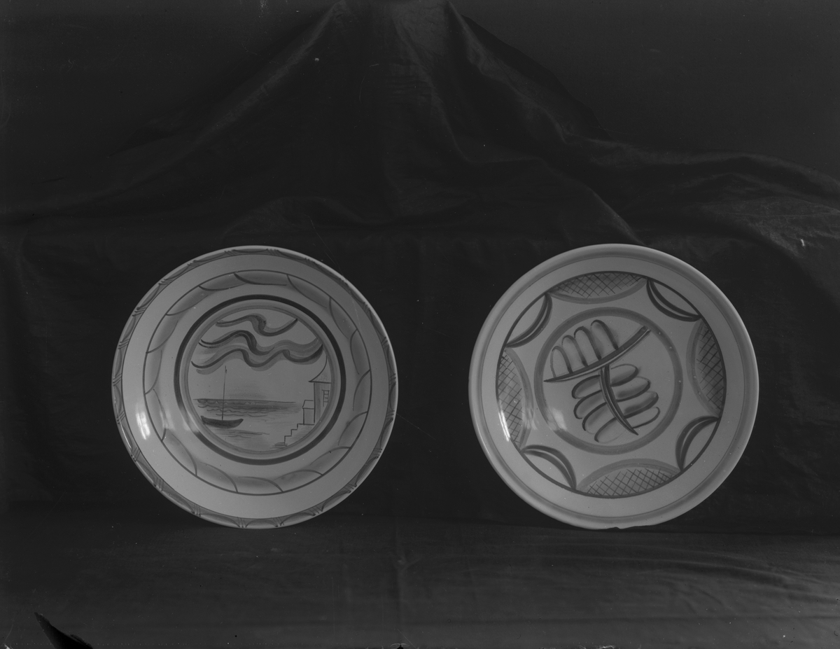Två handdekorerade skålar från Gefle Porslinsfabrik.