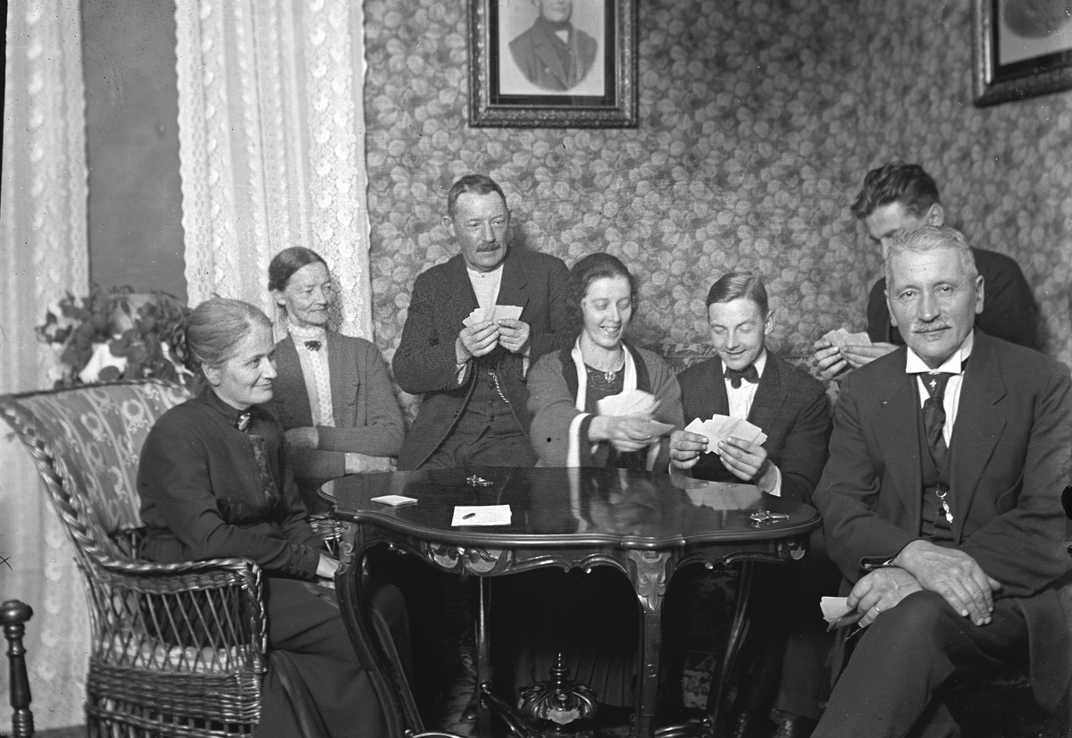 Kortspel. Margta Hillström längst till vänster, John Hillström trea från vänster.