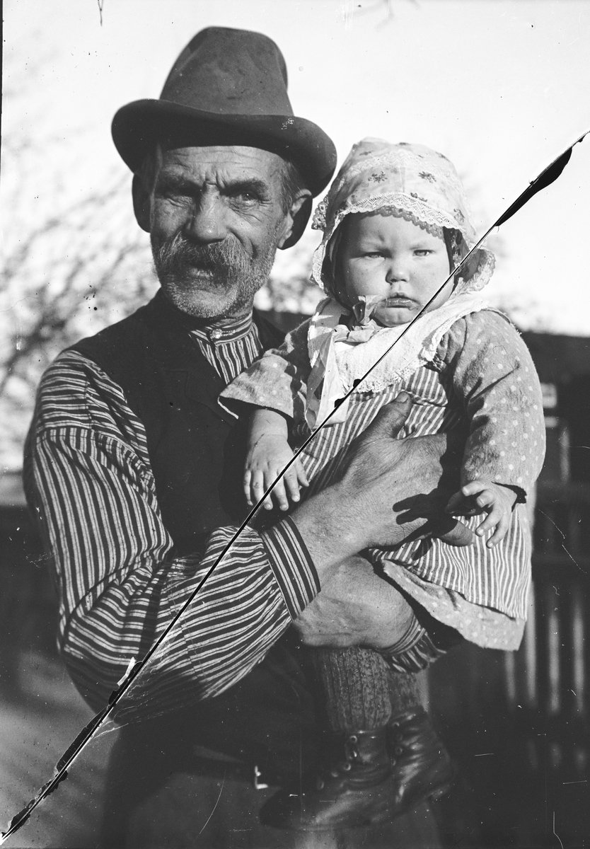 Man med barn på armen.