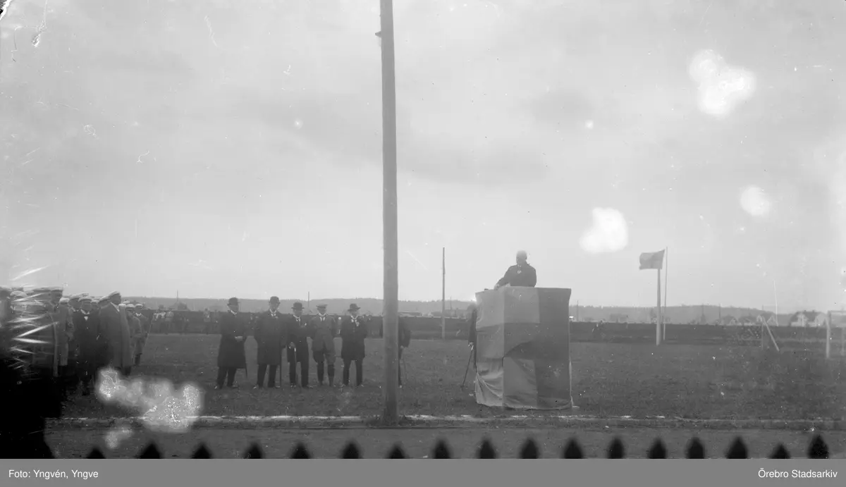 Man i talarstol vid idrottsevenemang, 1920-tal