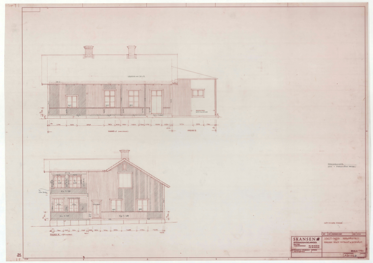 Titel: Ordenshuset. Fasadritning. Fasad mot sydväst och sydost.