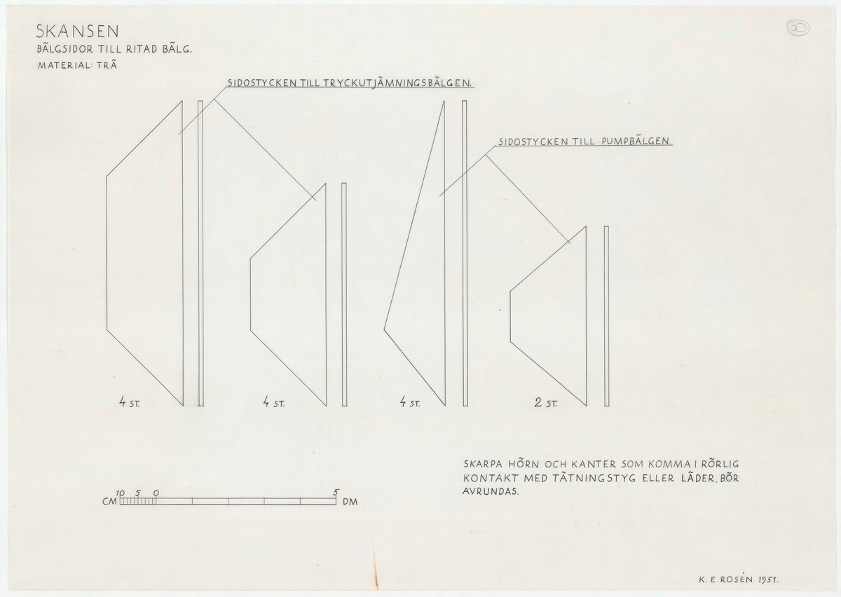 Titel: Guldsmedshuset. Uppmätningsritning. Bälgsidor till ritad bälg.