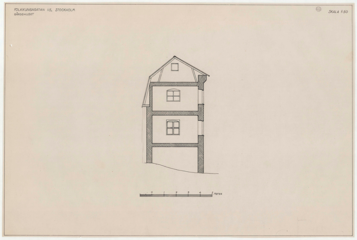 Titel: Guldsmedshuset. Fasadritning. Gårdshuset.