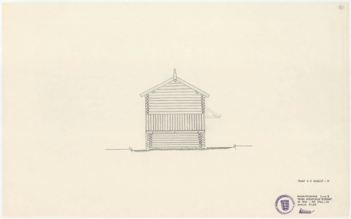 Titel: Älvrosgården. Loft- och loglängan. Sektionsritning.