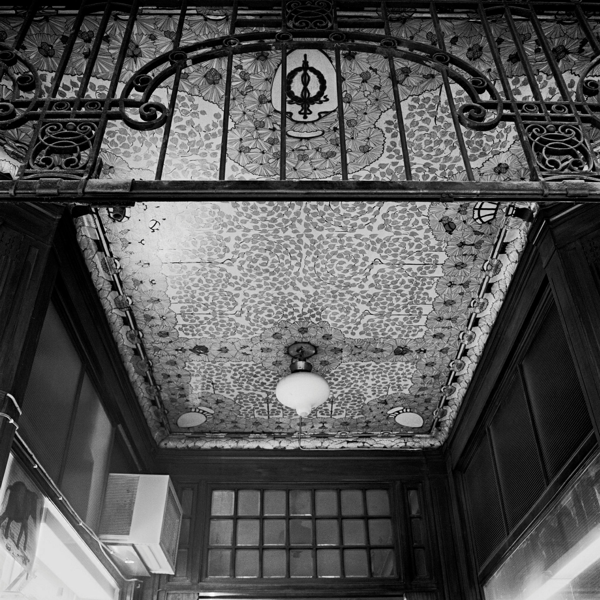 Titel: Målat glastak i yttre entré på Drottninggatan 57.