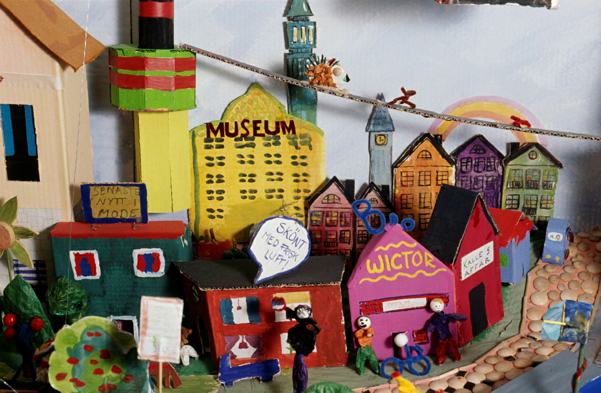 Framtidens stad - barnens stad. Modellen byggd av barn inom Stockholms stadsmuseums barnverksamhet Hyllan.