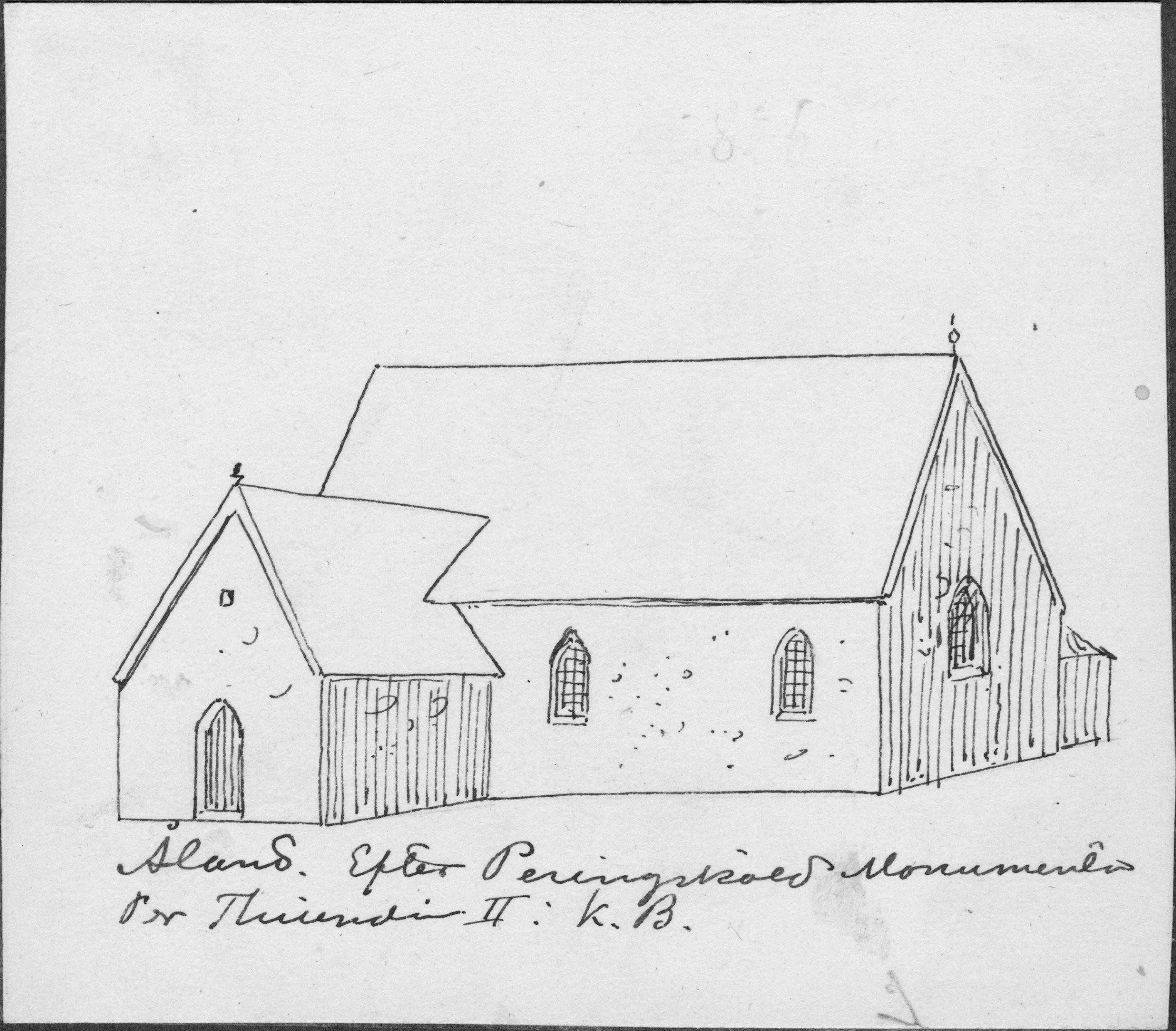 Kyrkan mot sydöst. Efter Johan Peringskiölds Monumenta.