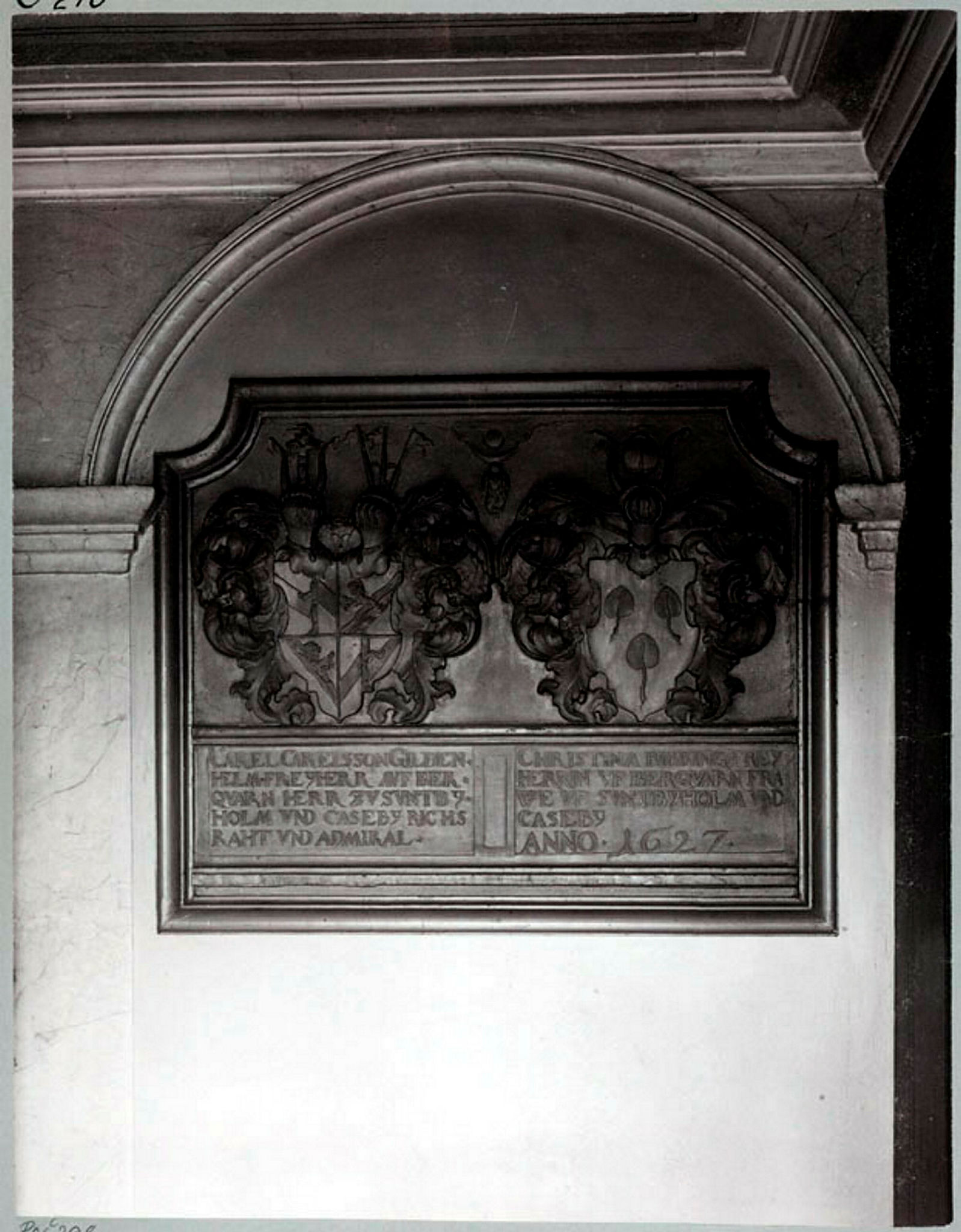 Titel: Svartmangatan n:r 24, stenornament i övre förstugan till portgången.