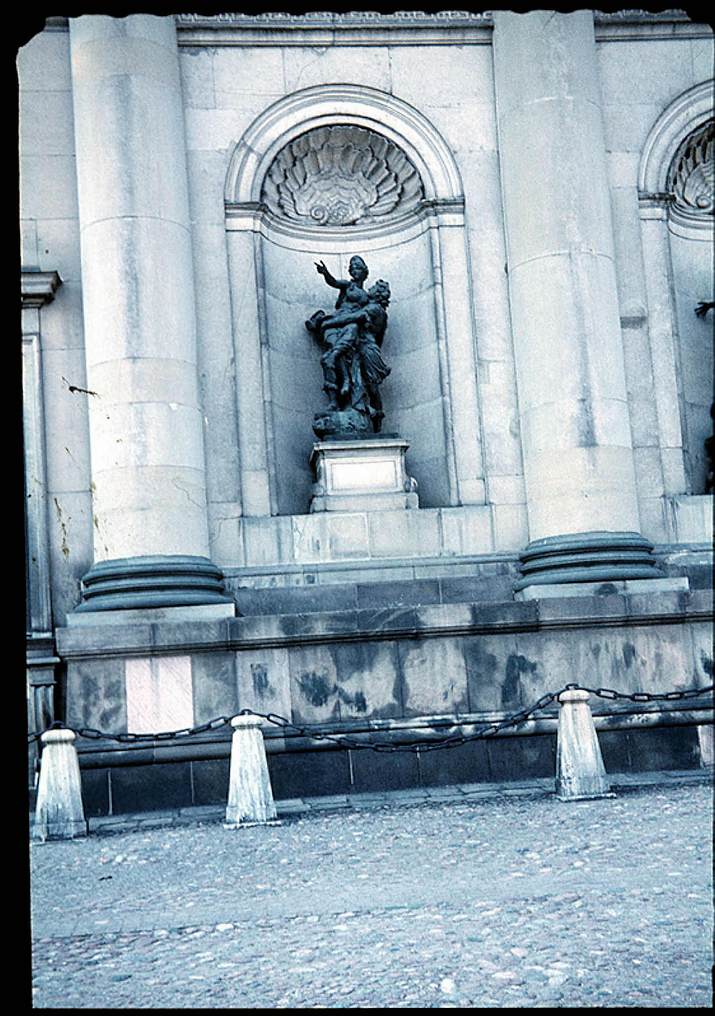 Slottsbacken. Slottet. Parti av södra fasadens mittparti. Skulpturen "Boreas och Oritya" i nisch.