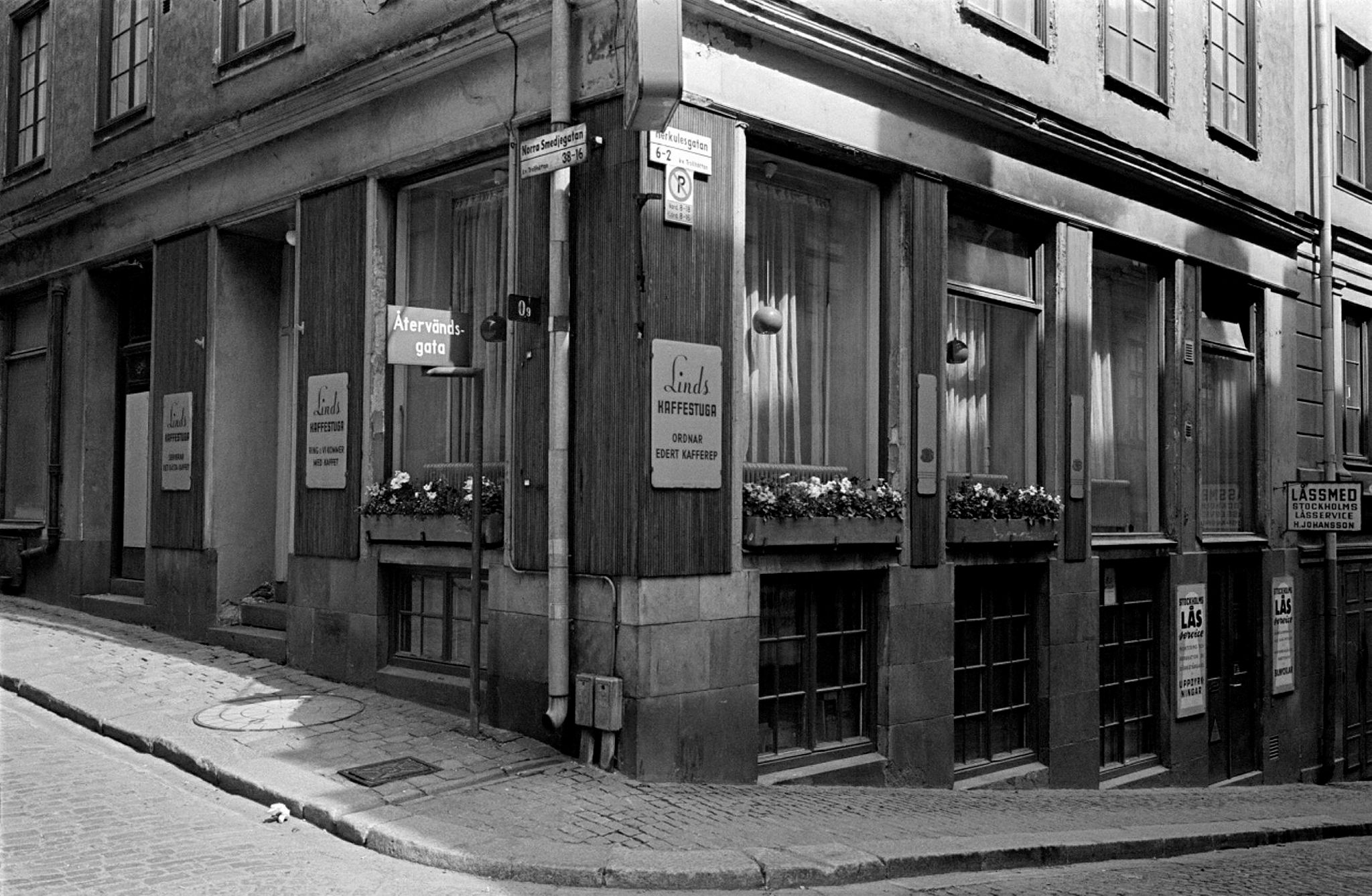 Linds kaffestuga vid Norra Smedjegatan 16 vid korsningen med Herkulesgatan.