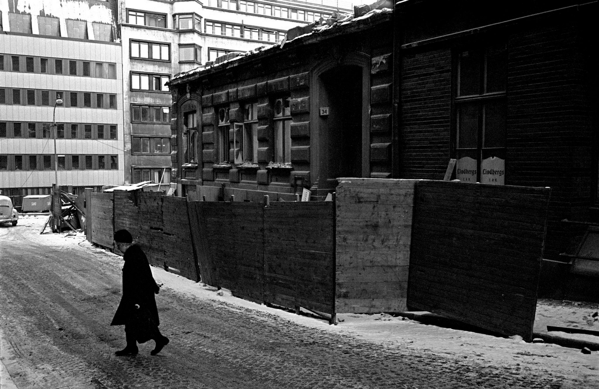 Norra Smedjegatan 34 under rivning. I fonden Hamngatan och kvarteret Hästskon.
