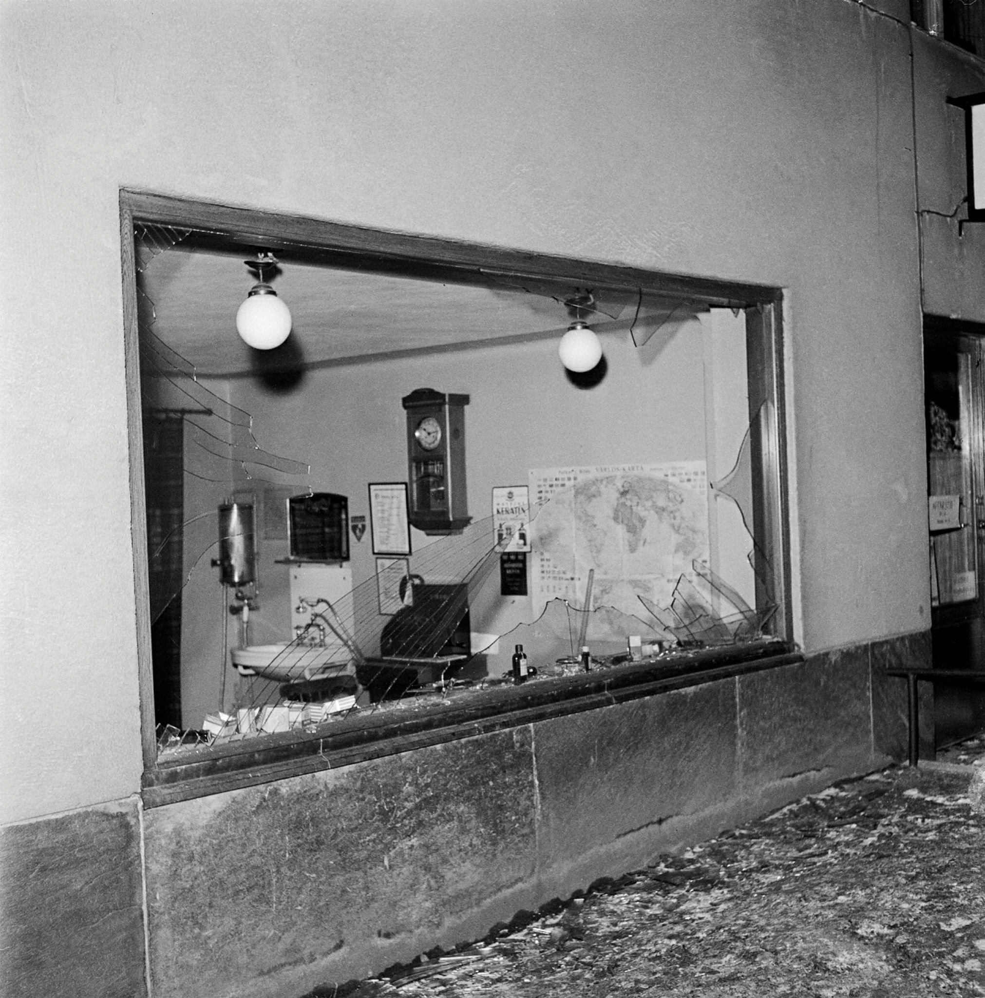 Bomber över Stockholm. Ryska flygbomer har sprängt ett butksfönster.