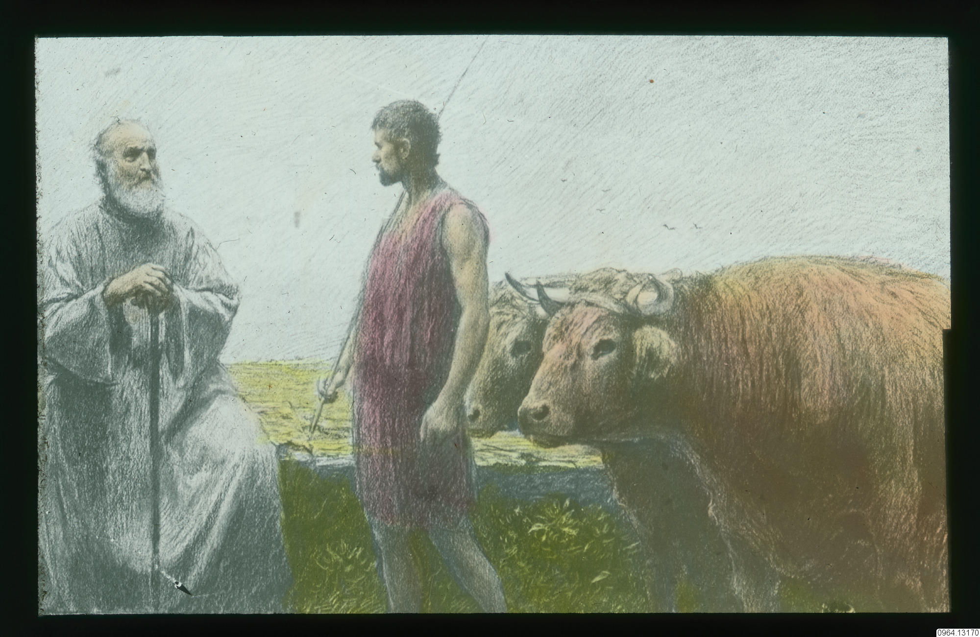 Beskrivning: Repro av målning. Lukasevangeliet. Luk. Målning av Eugene Burnand.