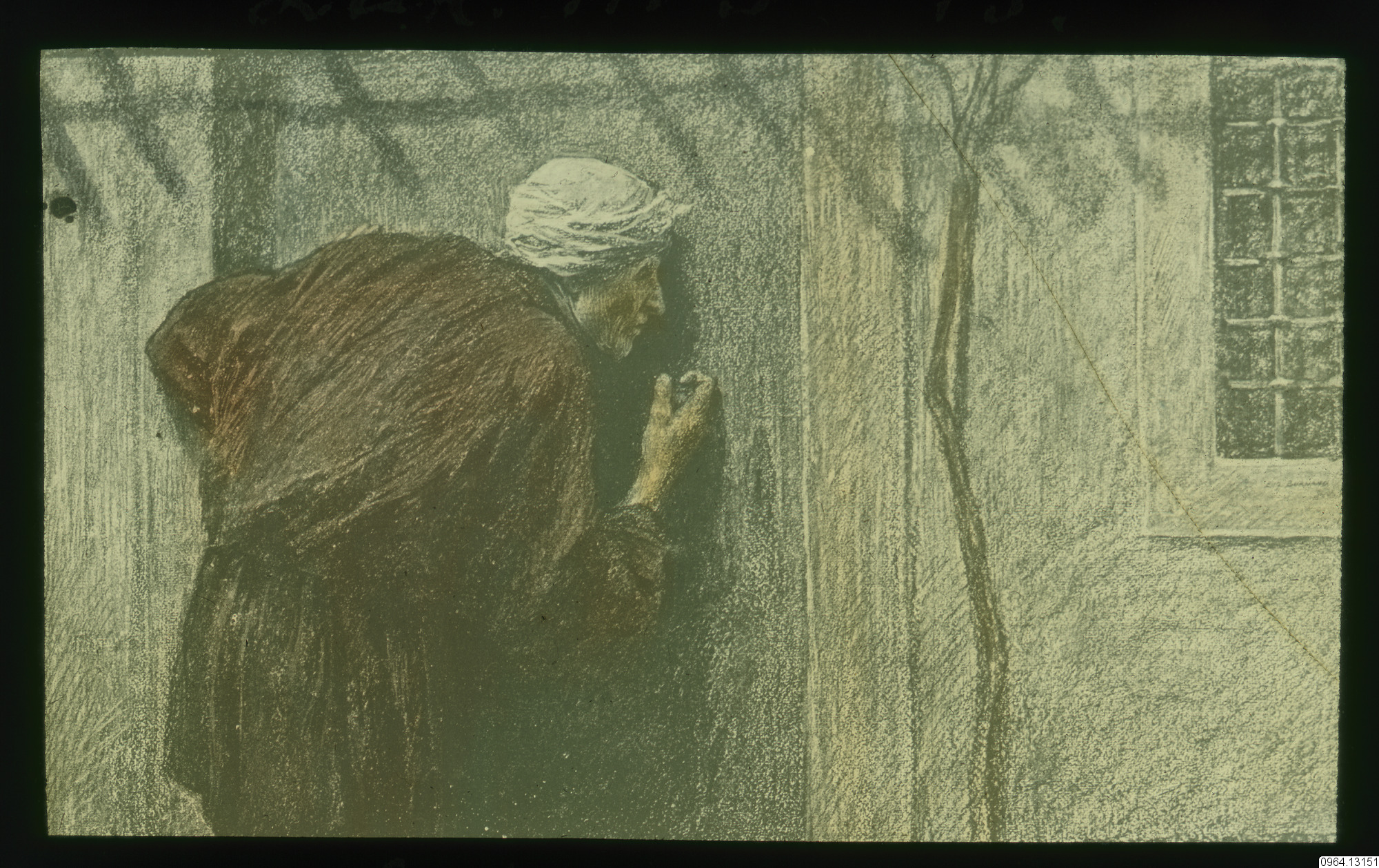 Repro av målning. Lukasevangeliet. Luk 11:5-13. "Den påträngande grannen". (The Importunate Neighbour) av Eugene Burnand.