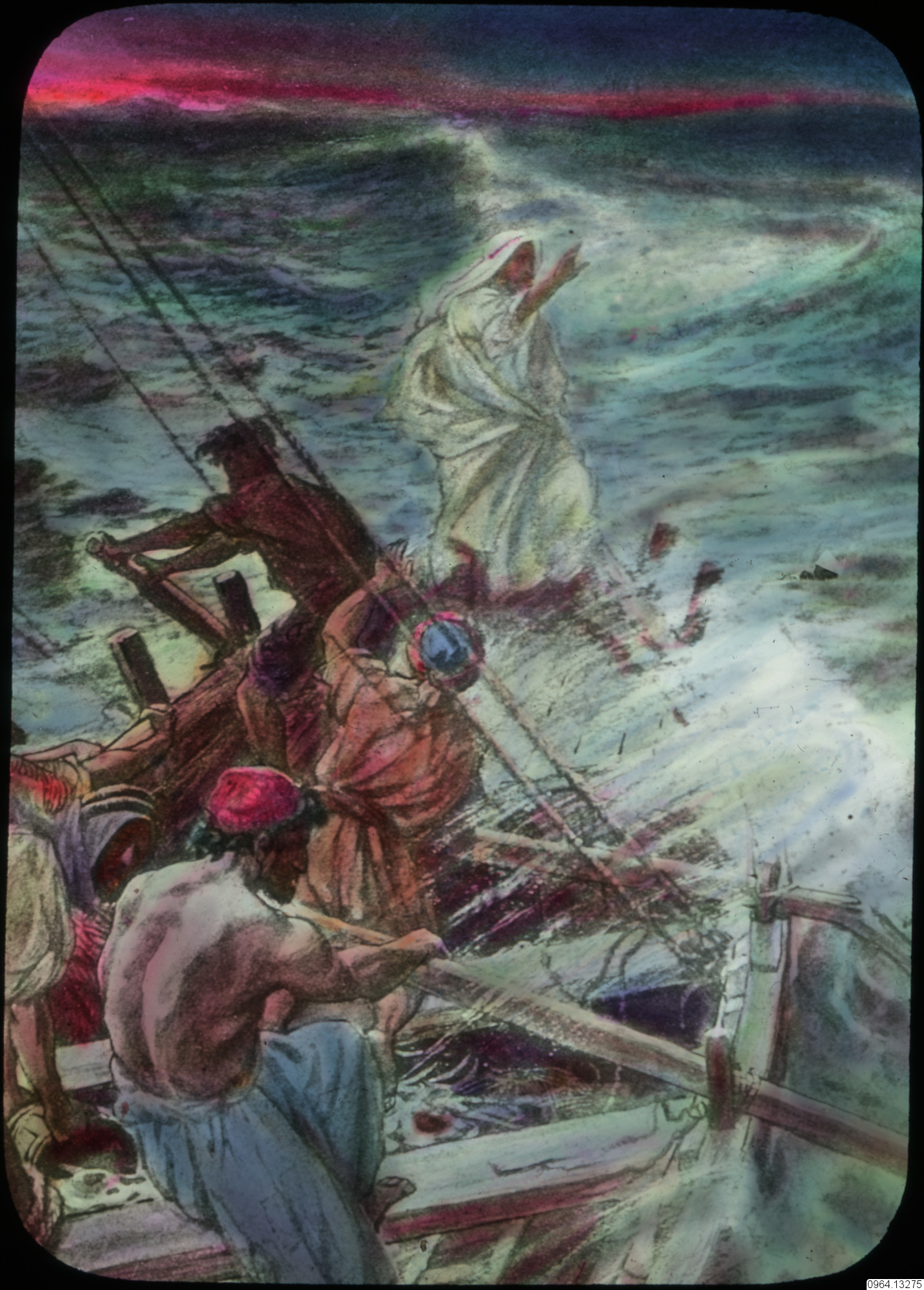 Beskrivning: Repro av målning av ?. Den skildrar ett bibliskt ögonblick.