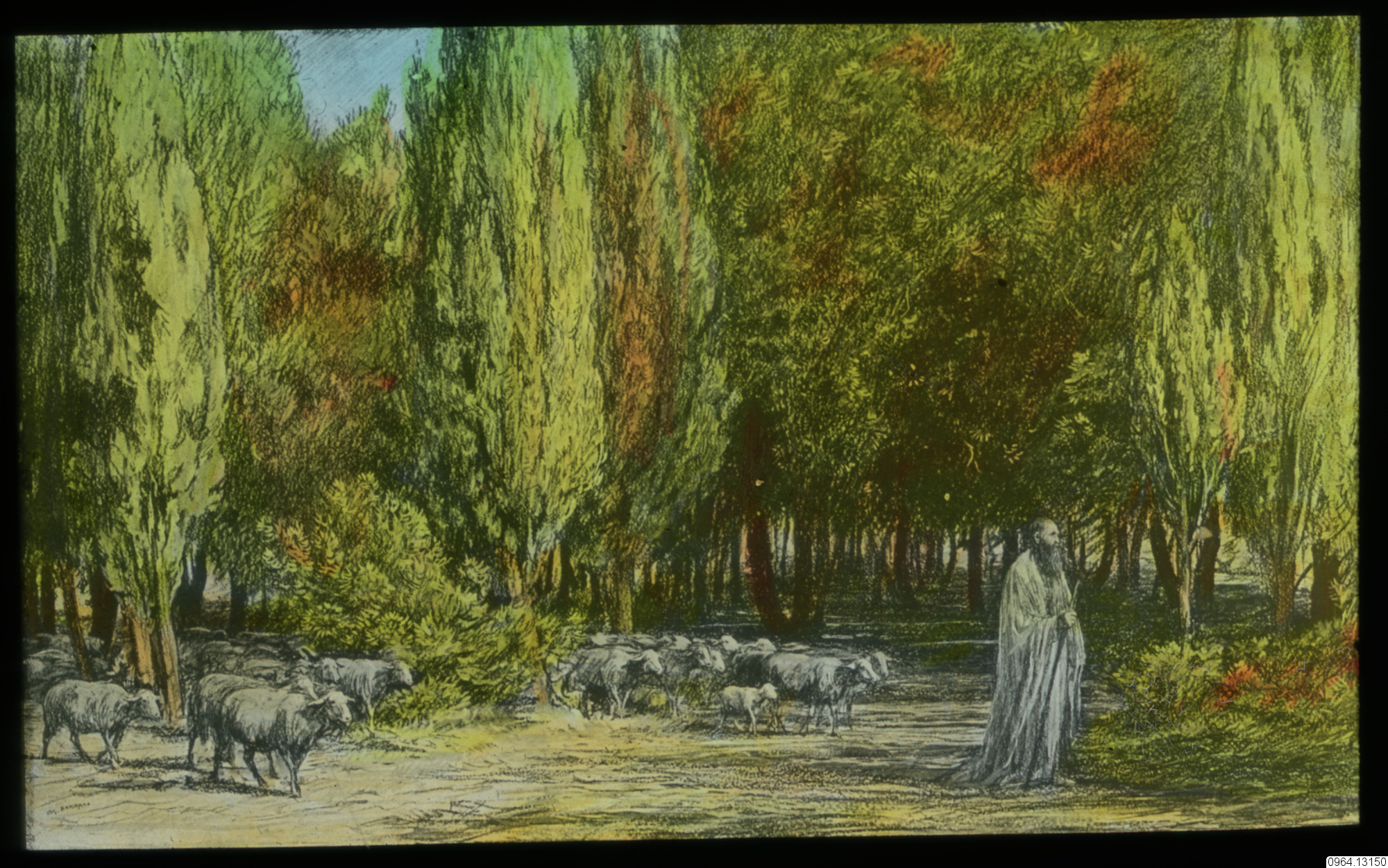 Repro av målning av ?. Den skildrar ett bibliskt ögonblick. Joh 10:1-16