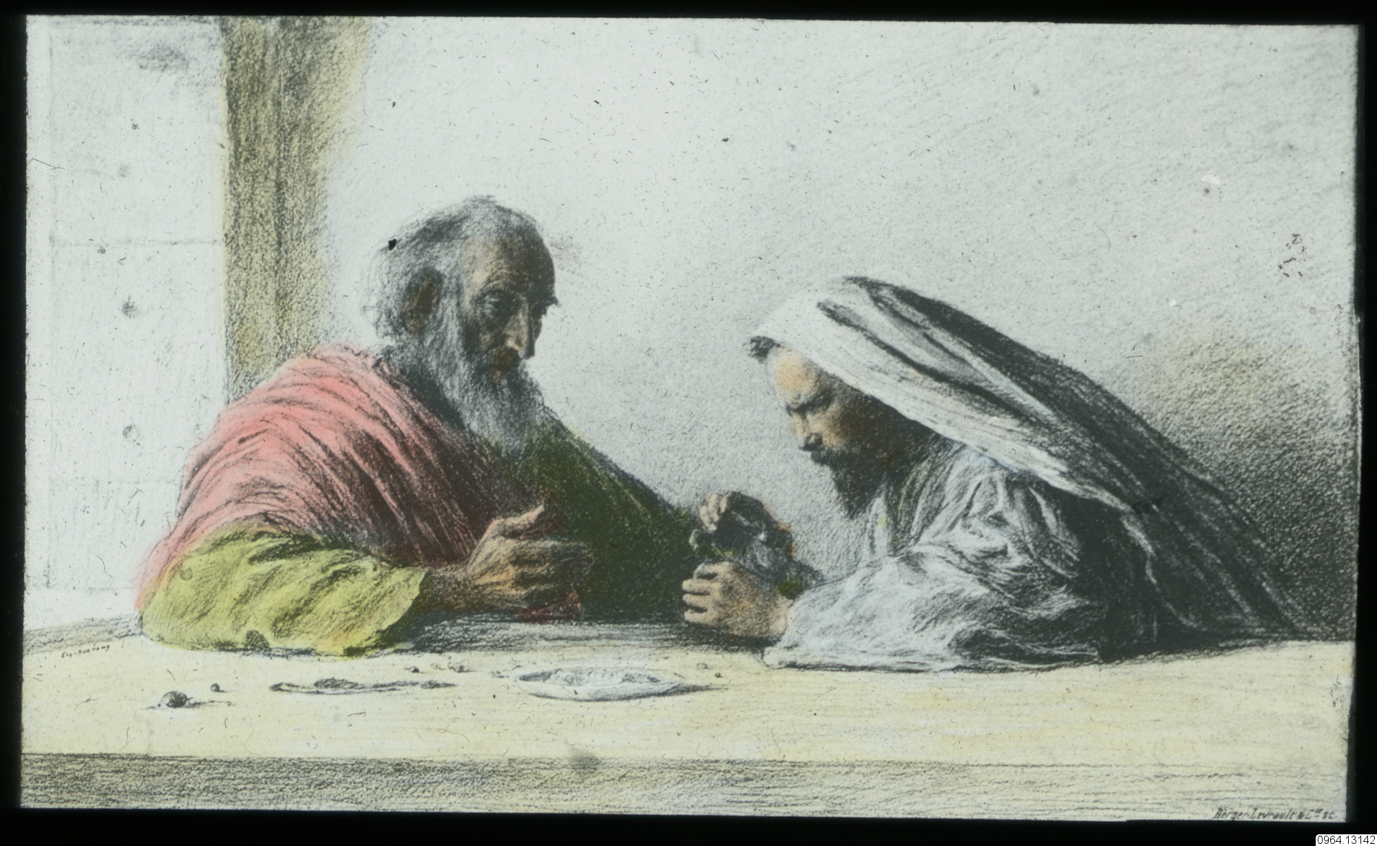 Repro av målning av Eugène Burnand. Den skildrar ett bibliskt ögonblick.