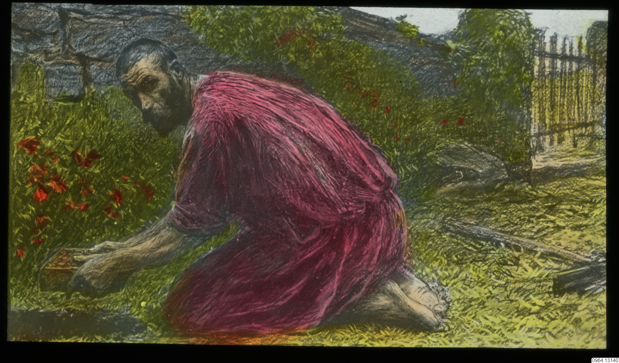 Repro av målning av Eugène Burnand. Den skildrar ett bibliskt ögonblick.