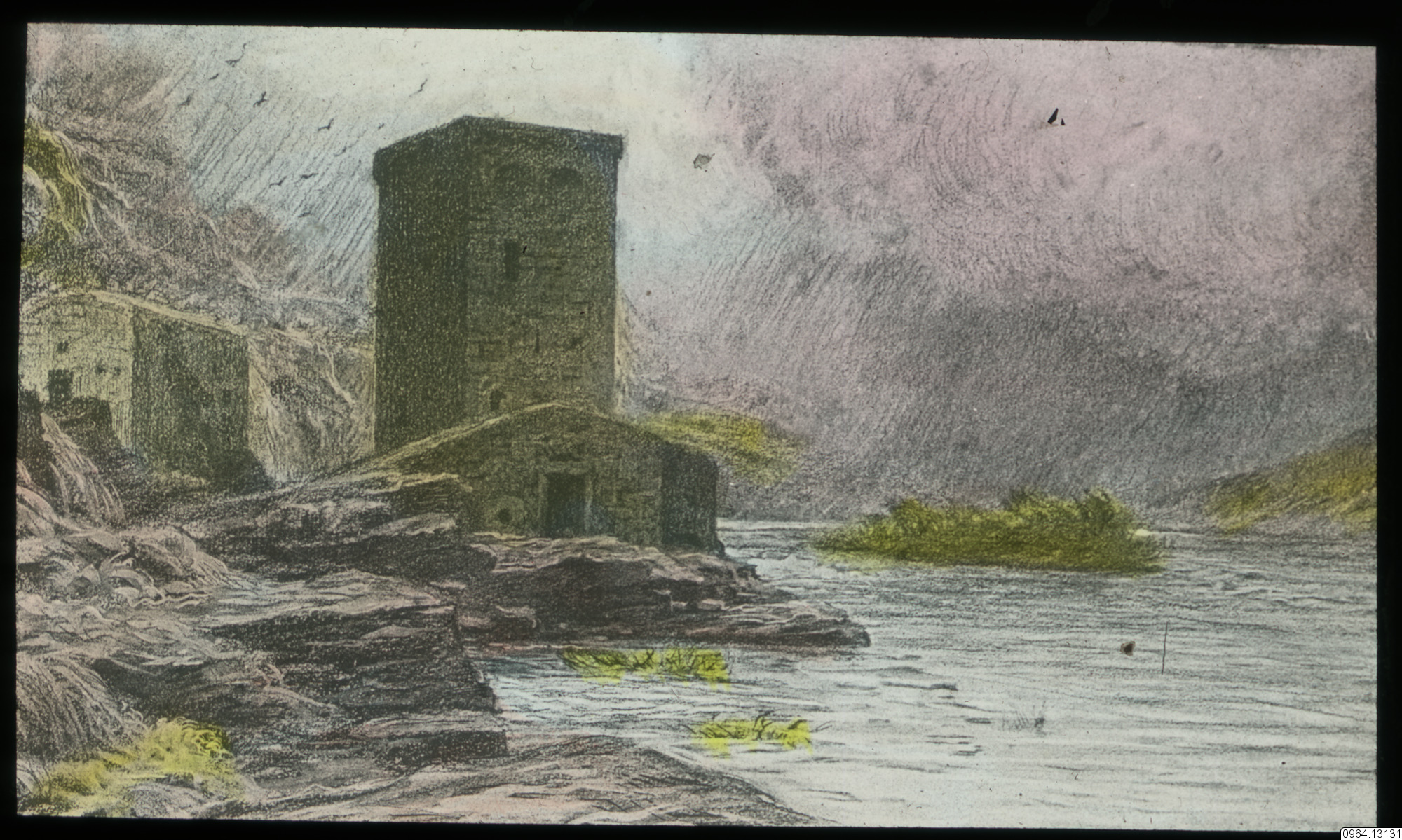 Repro av målning av Eugène Burnand "The House Built on Rock". Matthew 7: 24-27. Matteusevangeliet.