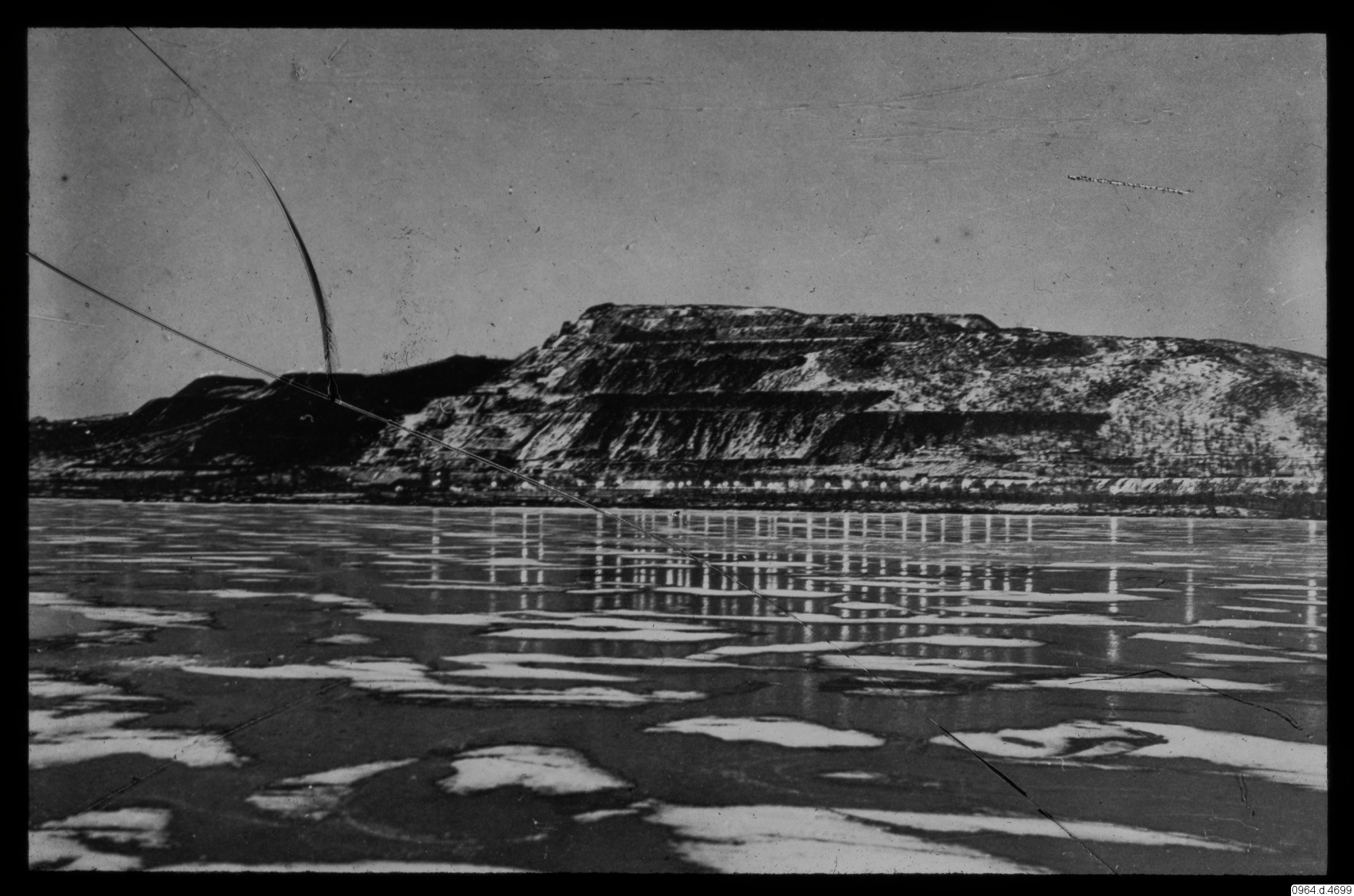 sjöis, snö, sjö, gruva, byggnader, berg, fotografi, photograph