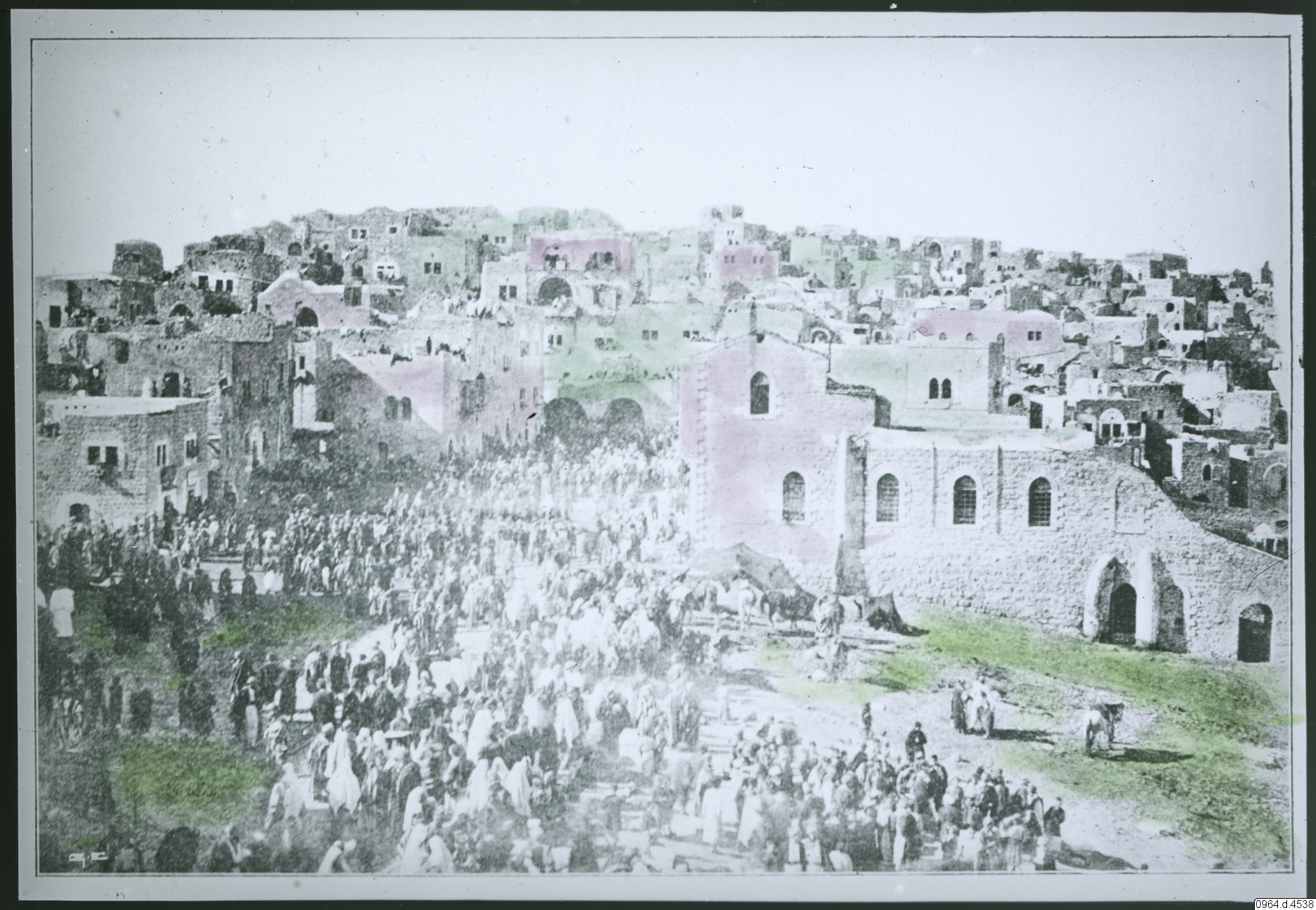 folksamling, bebyggelse, byggnader, kyrka, hästar, fotografi, photograph