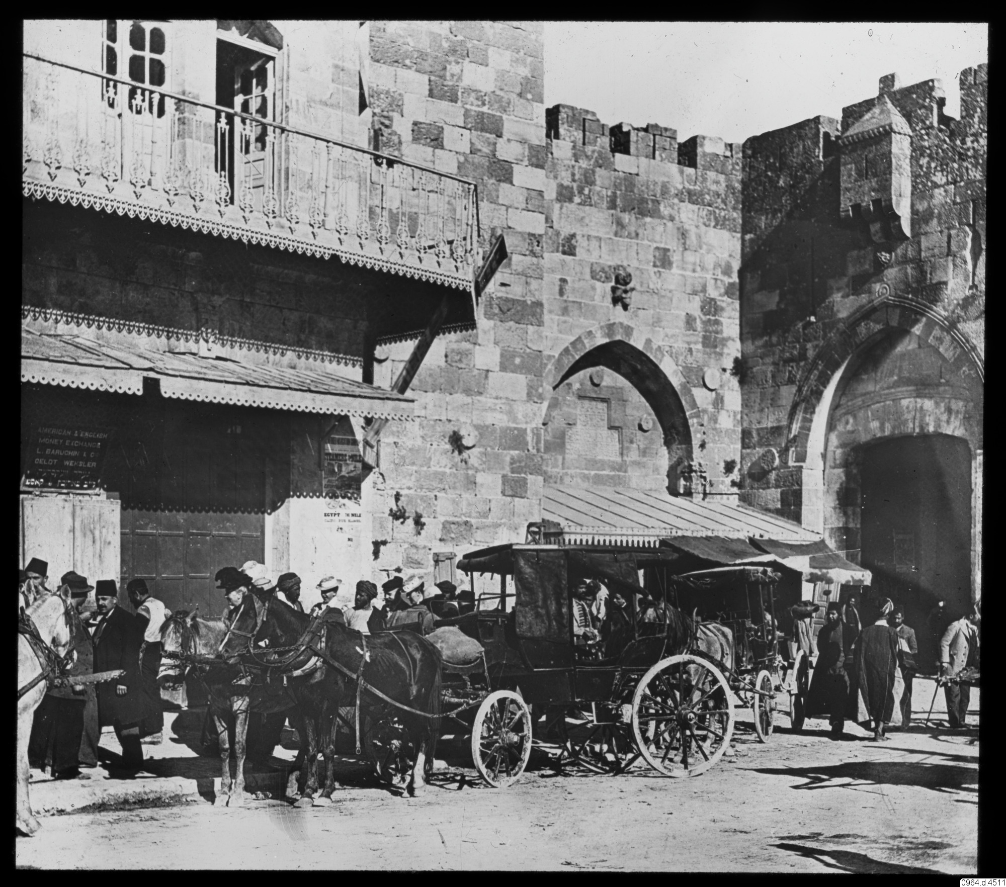 byggnader, hästekipage, stadsmur, vagnar, folksamling, stadsport, fotografi, photograph
