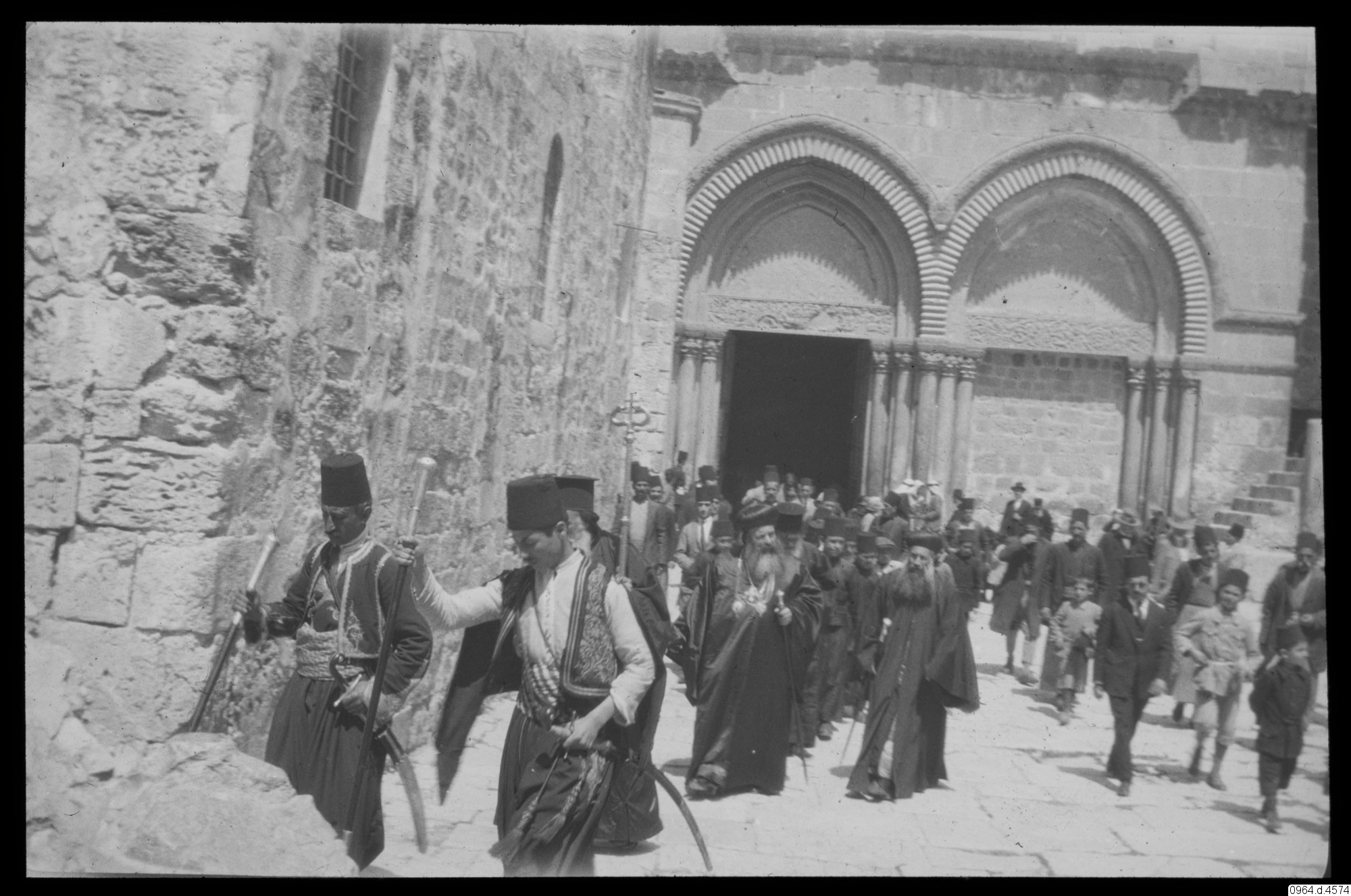 Fotograf E. Finn. Uppsala. Procession vid den Heliga Gravens Kyrka i Jerusalem.