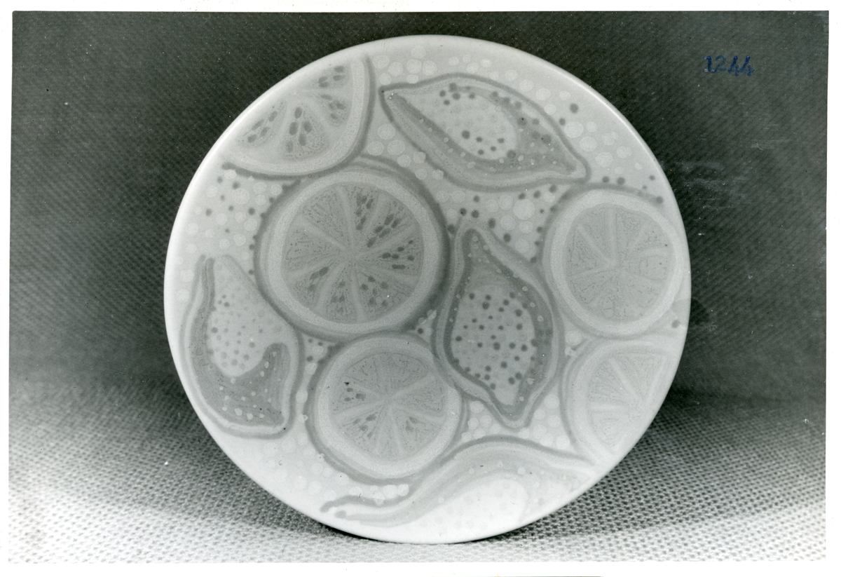 Fat med citrusfrukter från Bo Fajans, formgivare Maud Fredin-Fredholm, omkring 1900-talets mitt.